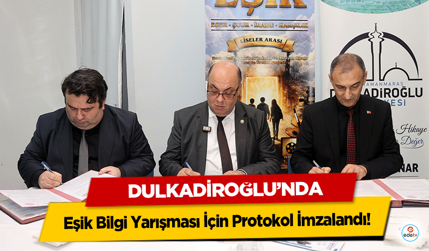 Dulkadiroğlu Belediye Başkanı Mehmet Akpınar, Kahramanmaraş Ticaret ve Sanayi Odası Genel Sekreteri Yunus Atmalı ve Dulkadiroğlu İlçe Millî Eğitim Müdürü Hüseyin Mart arasında, “EŞİK” Bilgi Yarışmasına ilişkin iş birliği protokolü imzalandı.