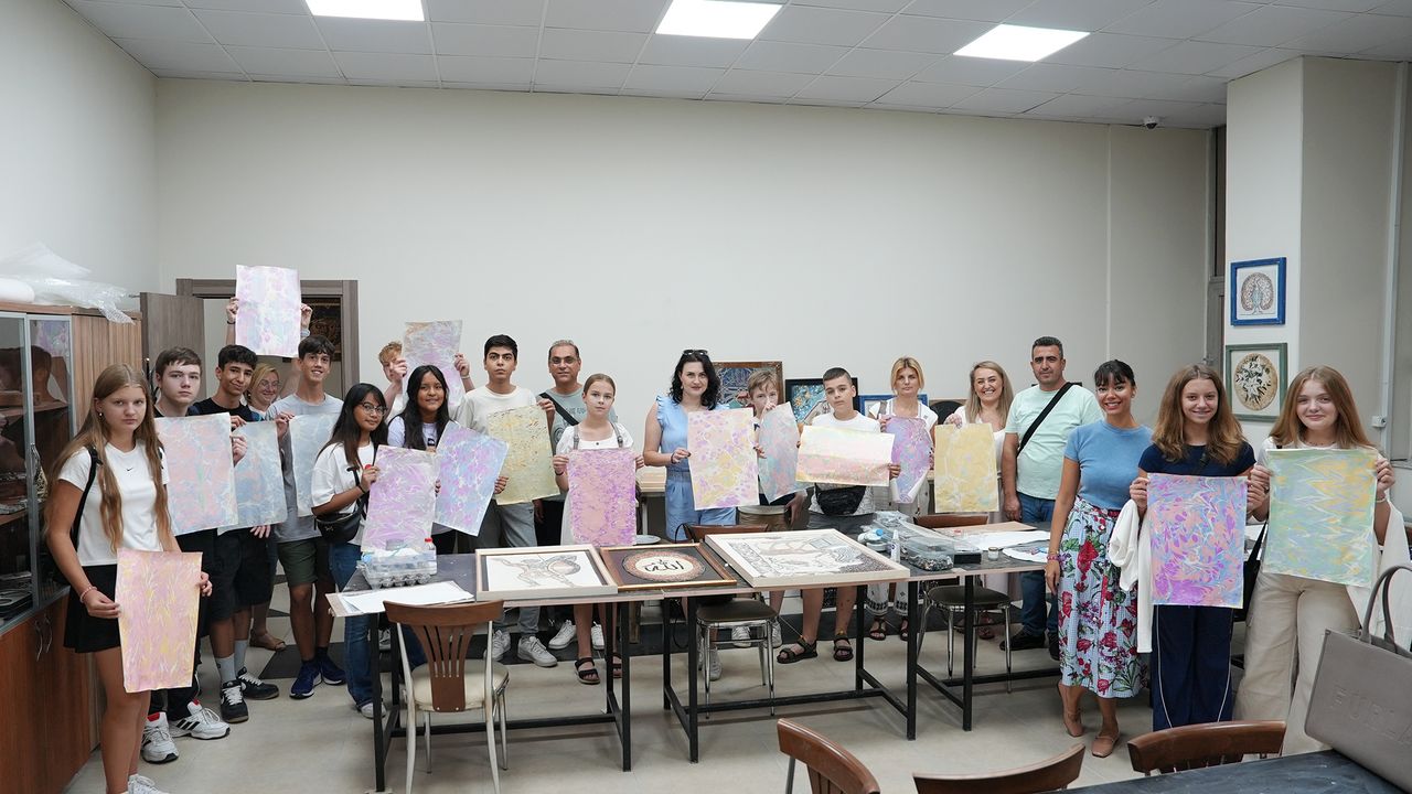 Ziyaret kapsamında KAMEK’te yürütülen eğitimler hakkında bilgi alan öğrenciler, özellikle ebru ve süs eşyası yapım atölyelerinde uygulamalı çalışmalar gerçekleştirdi. Ortaya çıkan renkli görüntüler, öğrencilerin hem eğlenmesini hem de Türk kültürüne dair yeni deneyimler kazanmasını sağladı.