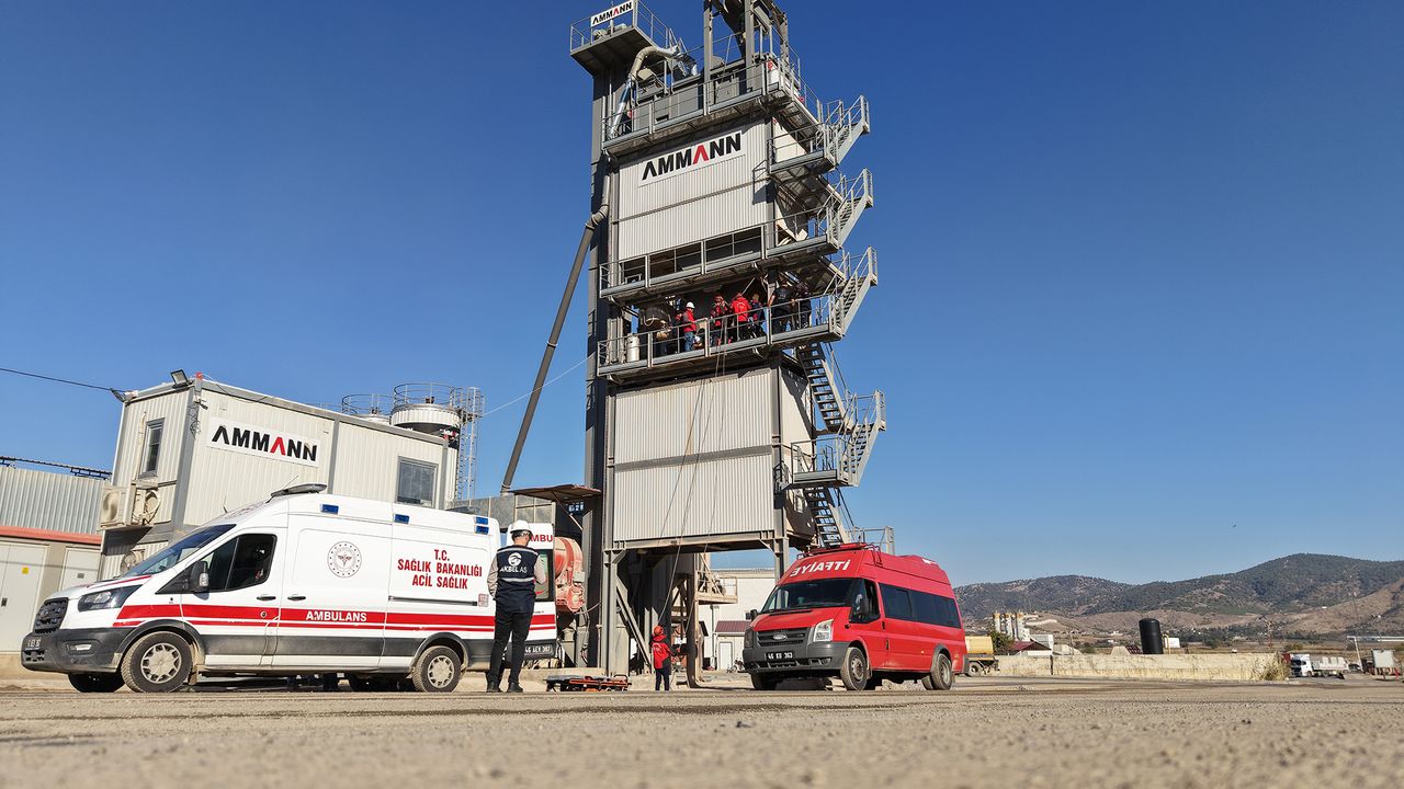 İtfaiye ve Afet İşleri Dairesi Başkanlığı, AKBEL ve İl Sağlık Müdürlüğü iş birliğiyle Asfalt Üretim Tesisi’nde oldukça kapsamlı ve gerçeğini aratmayan bir tatbikat gerçekleştirildi. Senaryo gereği üretim tesisinde çalışma esnasında fenalaşarak baygınlık geçiren personele İtfaiye erlerince dakikalar içerisinde müdahale edildi.
