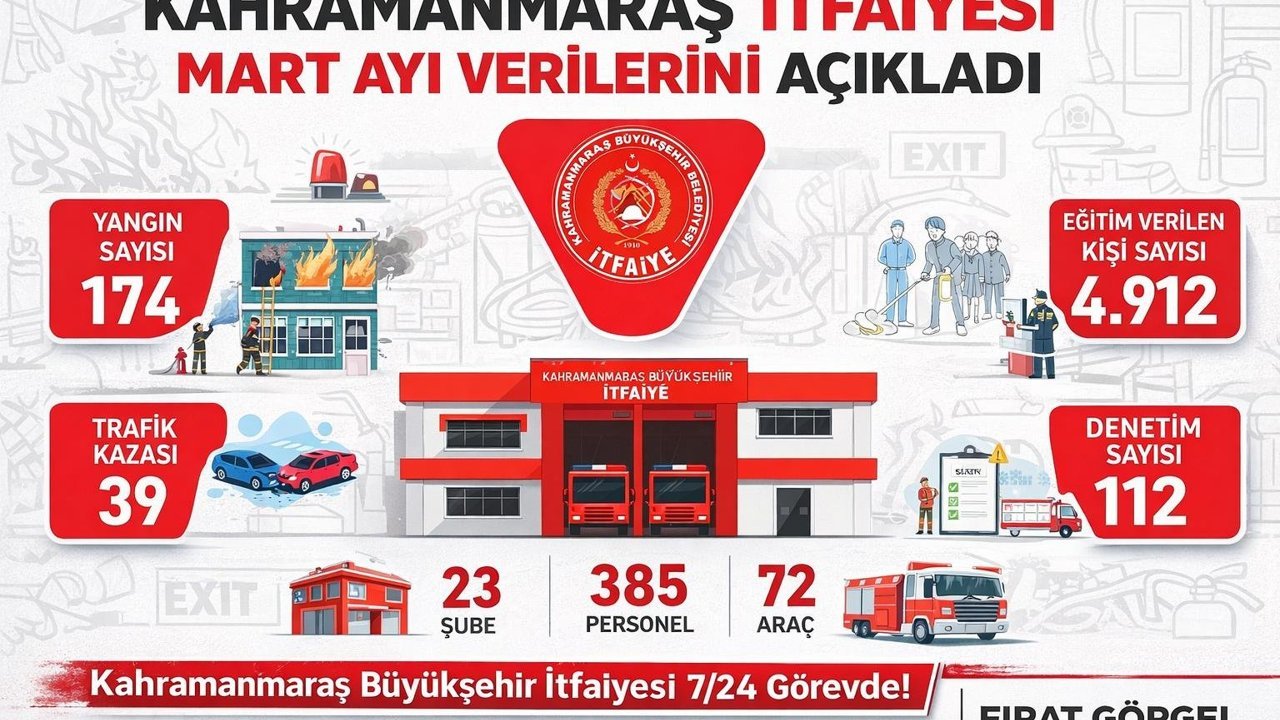 Mart ayında meydana gelen olaylar incelendiğinde, 174 yangına müdahale edilirken 39 trafik kazasında da ekipler görev aldı. Ayrıca 9 su baskınına müdahale edilirken, boğulma vakası yaşanmadığı bildirildi.