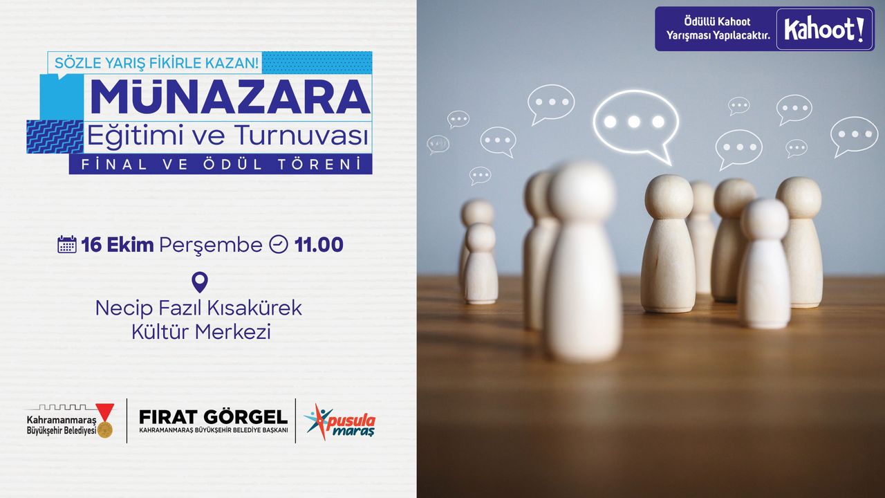 Gençlere yönelik projeleriyle adından söz ettiren Kahramanmaraş Büyükşehir Belediyesinin gençlerin kişisel gelişimine katkı sunması için hayata geçirdiği “Münazara Eğitimi ve Turnuvası” final aşamasına geldi.