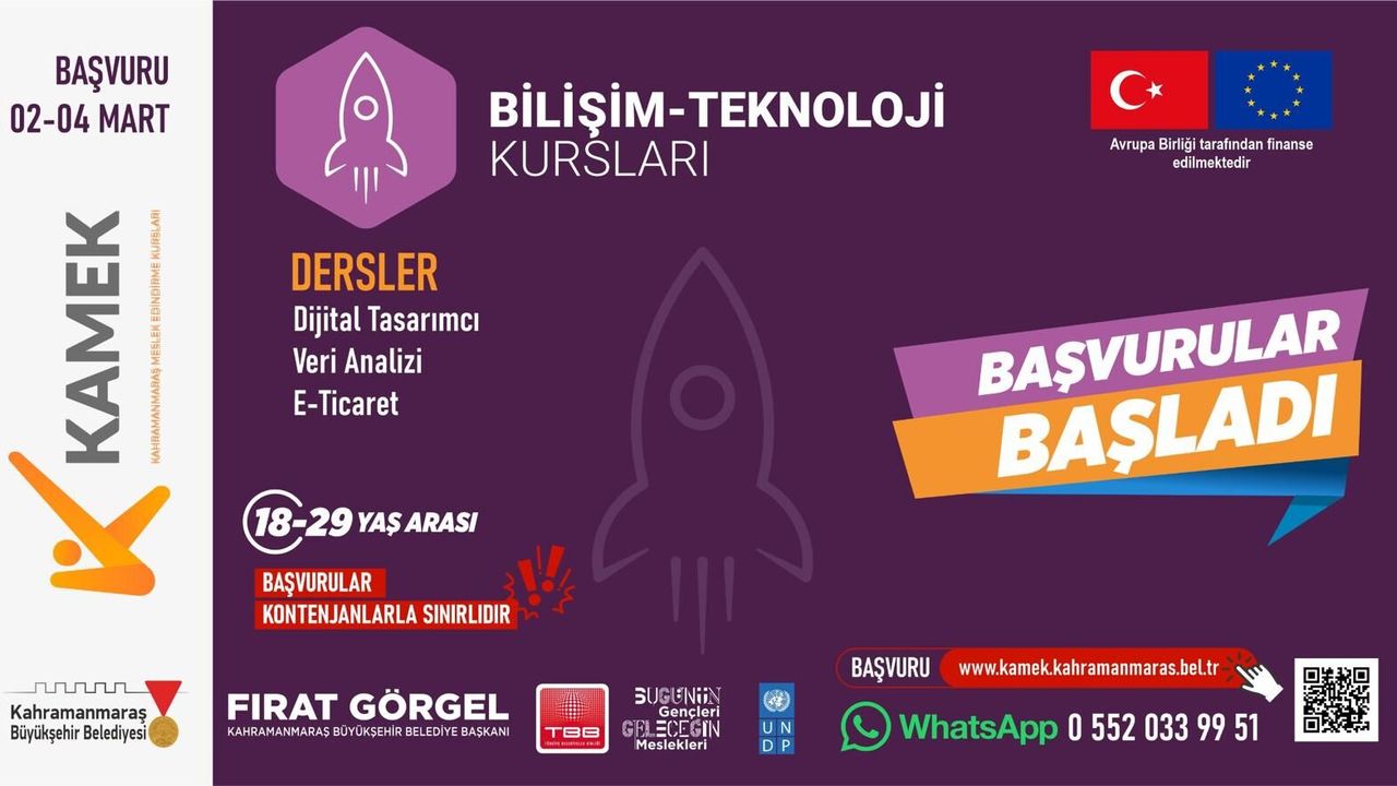 Bahar dönemi kurslarına başvurular 2 Mart Pazartesi günü itibarıyla başlayacak. Başvurular, Büyükşehir Belediyesi ve KAMEK’in internet adresi üzerinden çevrimiçi olarak yapılabilecek. Son başvuru tarihi ise 4 Mart Çarşamba olarak açıklandı. Ücretsiz olarak düzenlenecek kurslara 16 yaş ve üzerindeki tüm vatandaşlar davet edildi.