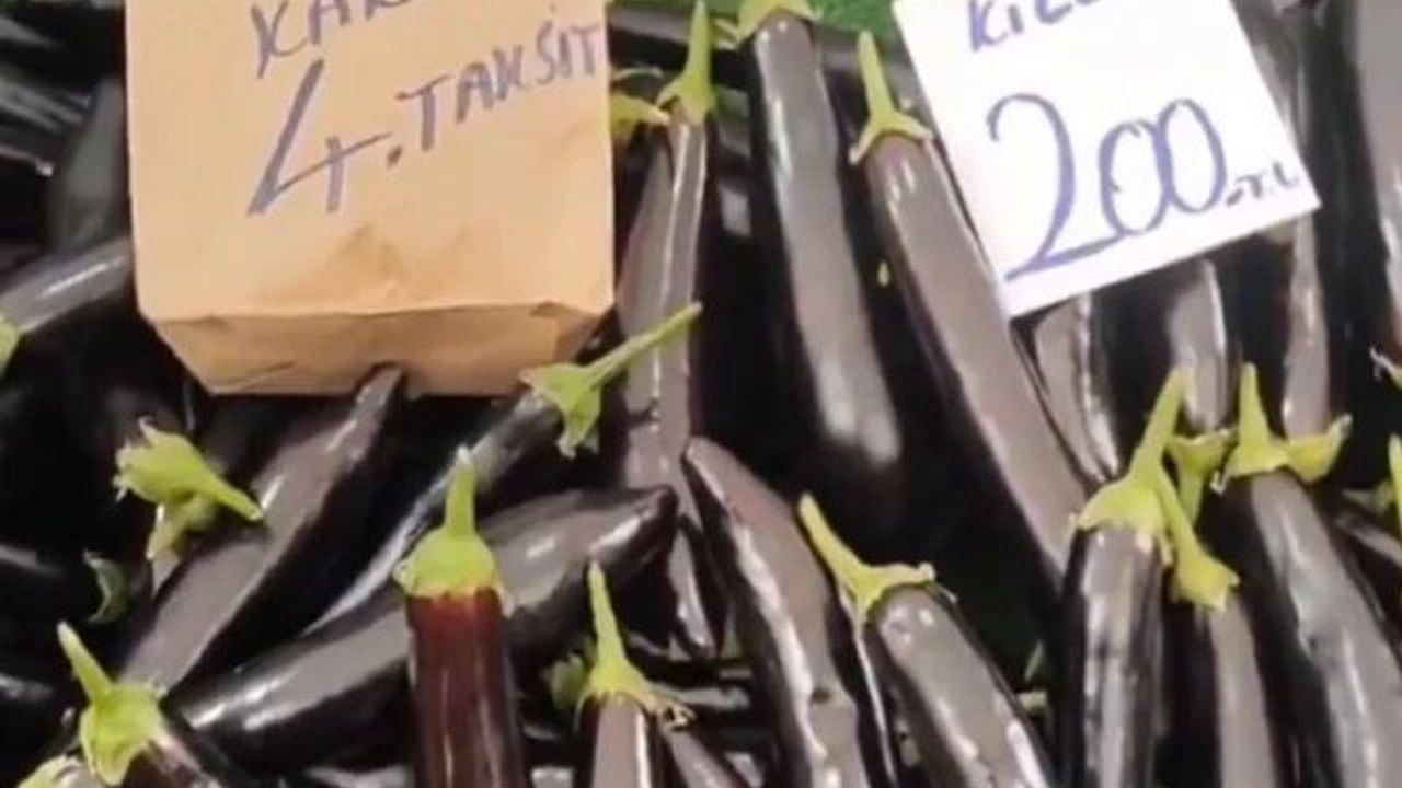 Artan fiyatlar karşısında müşterilerin alım gücünün düştüğünü söyleyen pazarcı, kilosu 200 liraya ulaşan patlıcanı kredi kartına 4 taksit imkanıyla satmaya başladı. Tezgaha asılan "4 taksit patlıcan" yazısı kısa sürede hem pazarda hem de sosyal medyada gündem oldu.