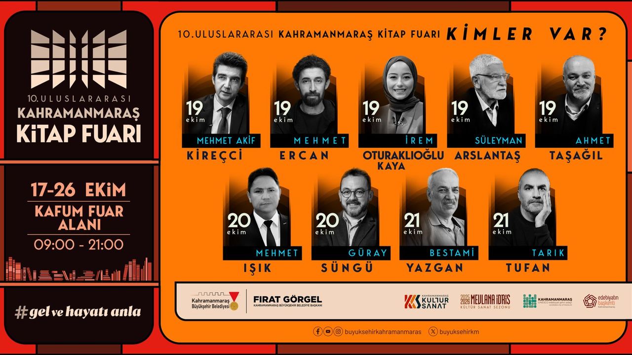 Kahramanmaraş Büyükşehir Belediyesi, 10. Uluslararası Kitap Fuarı’yla şehri kitapla, yazarla ve okurla buluşturacak. 10. Uluslararası Kahramanmaraş Kitap Fuarı, yalnızca bir fuar değil; aynı zamanda şiirin, düşüncenin ve sanatın yeniden hayat bulduğu bir kültür buluşması olacak. Binlerce eserin, yüzlerce yazarın ve yüz binlerce ziyaretçinin bir araya geleceği etkinlikte, edebiyatın kalbi bir kez daha Kahramanmaraş’ta atacak. Büyükşehir Belediyesi, 17 – 26 Ekim tarihleri arasında KAFUM’da düzenlenecek bu büyük kitap şölenine tüm vatandaşları davet etti.