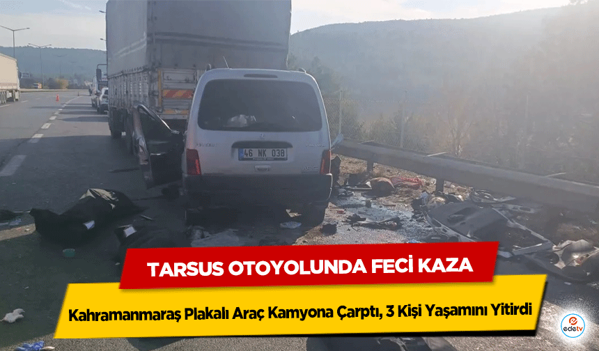 Kahramanmaraş plakalı bir hafif ticari aracın seyir halindeki kamyona arkadan çarpması sonucu ilk belirlemelere göre 3 kişi hayatını kaybederken, 3 kişi de yaralandı.